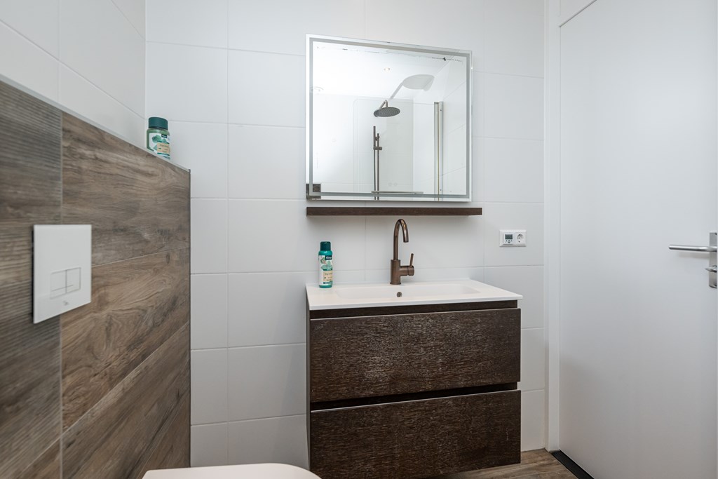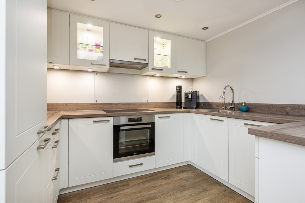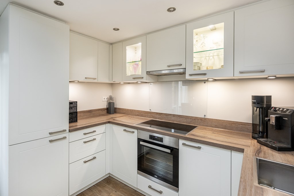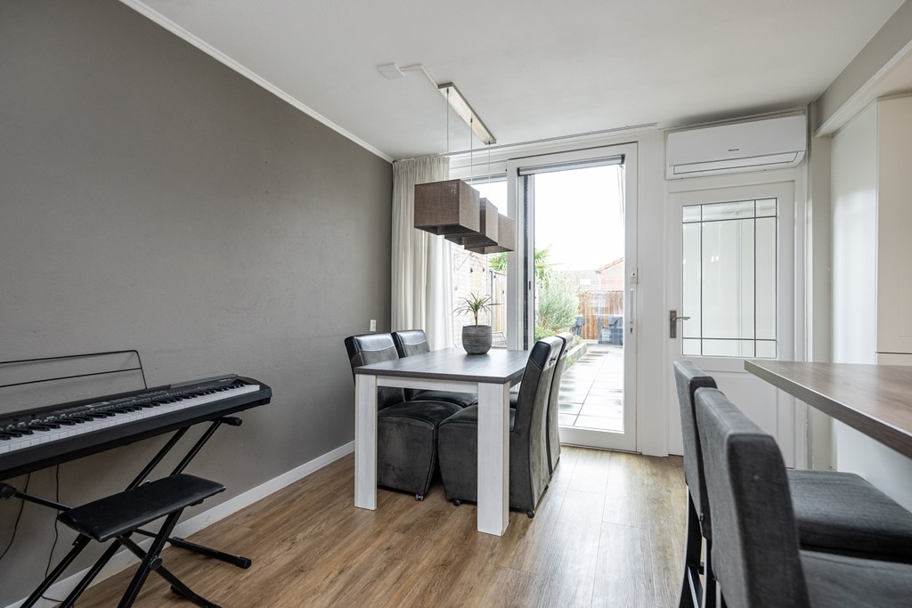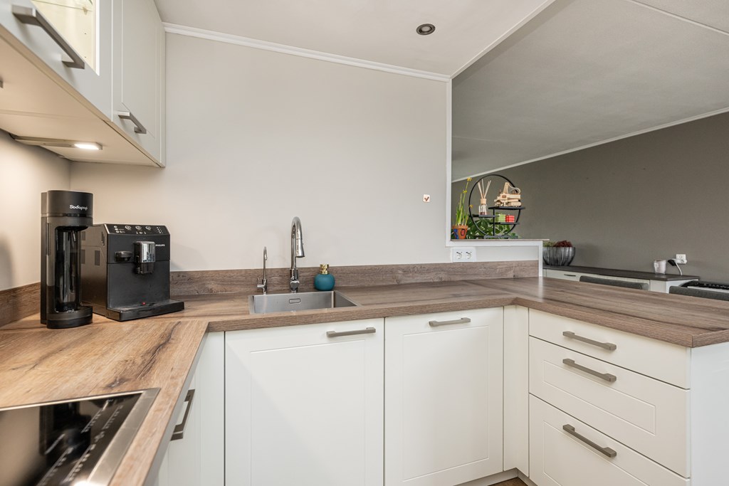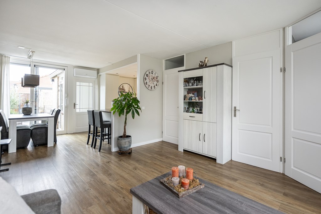 De woonkamer is een fijne, lichte leefruimte waar u zich direct thuis zult voelen. Dankzij de airco in de woonkamer geniet u hier het hele jaar door van een aangenaam binnenklimaat: verkoelend in de zomer en indien gewenst extra verwarmend in de winter. Aansluitend aan de keuken vindt u een bijzonder praktische bijkeuken. Ideaal voor het plaatsen van uw wasmachine en droger, extra opslag of als provisieruimte. Zo blijft uw keuken altijd netjes en georganiseerd.