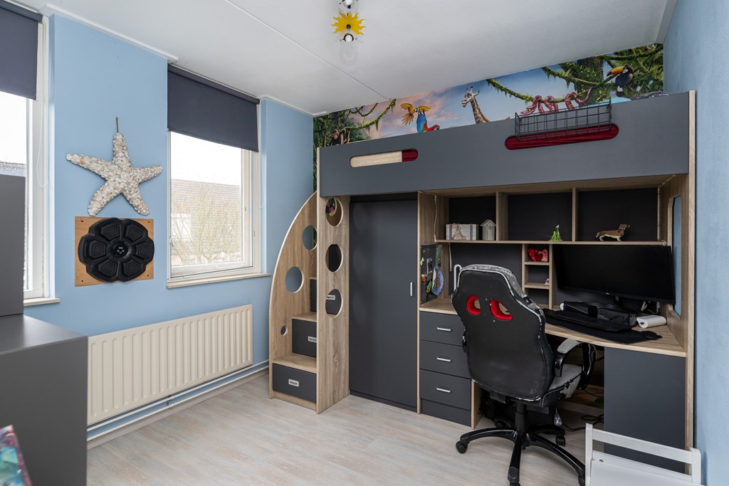 Op de eerste verdieping beschikt u over drie comfortabele slaapkamers en een nette badkamer. Dankzij de dakkapel aan de achterzijde, voorzien van rolluiken, is dit een heerlijke lichte ruimte met extra wooncomfort en privacy. Op de overloop van deze verdieping is eveneens een airco geplaatst, wat zorgt voor een prettig klimaat op warme dagen. De tweede verdieping biedt nog een volwaardige vierde slaapkamer.