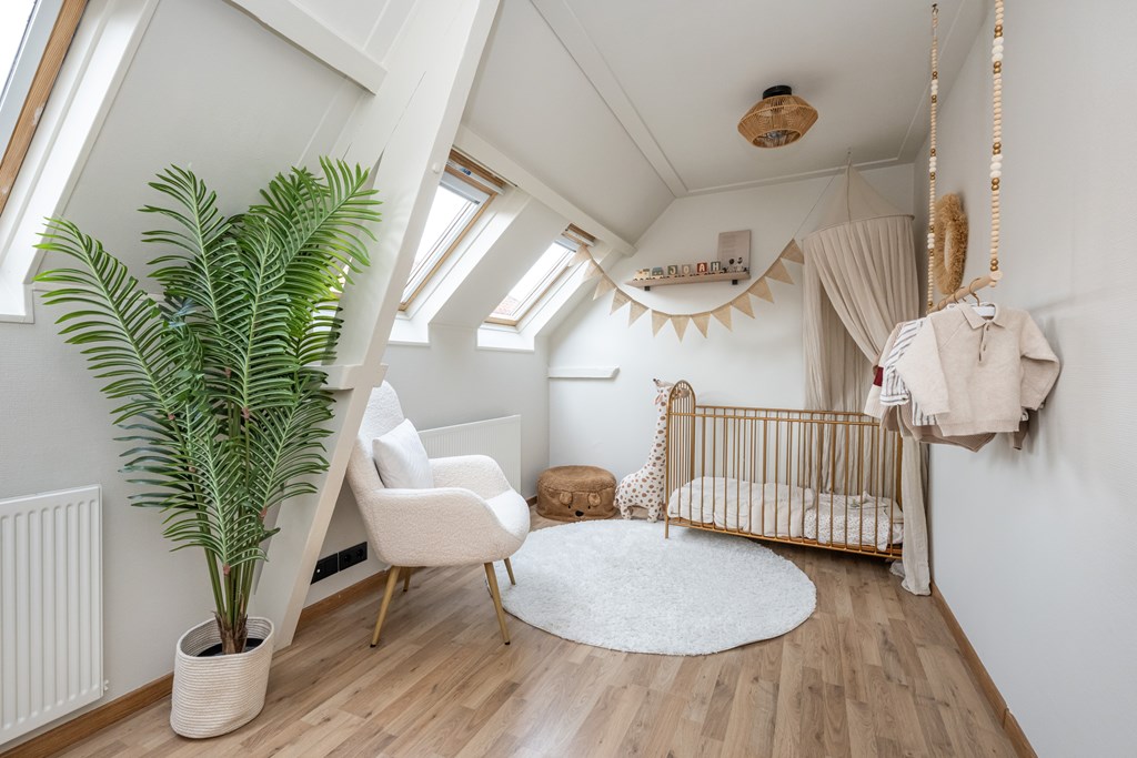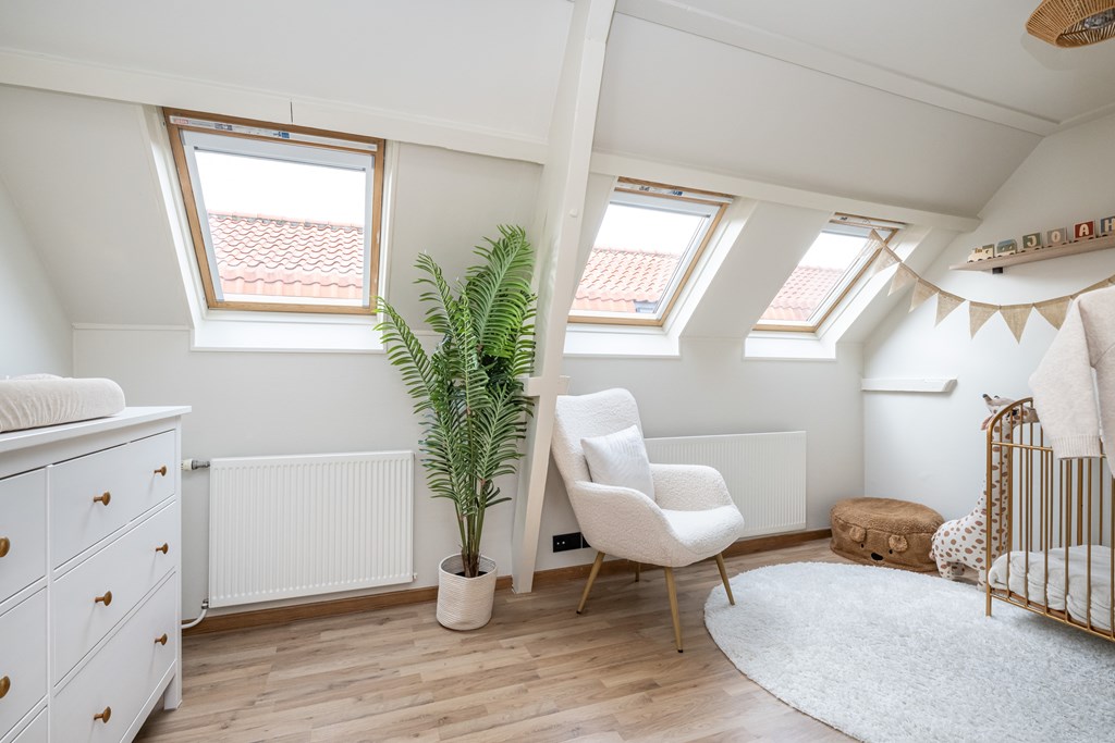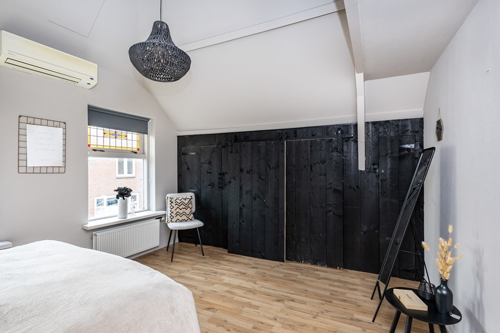 Op de eerste verdieping bevinden zich twee slaapkamers, beide netjes afgewerkt en met een prettige lichtinval. De hoofdslaapkamer is ruim opgezet en uitgerust met een airconditioning, waardoor u ook in de warme zomermaanden verzekerd bent van een aangenaam binnenklimaat. De tweede slaapkamer is ideaal als logeerkamer, werkruimte of kinderkamer – u kunt er alle kanten mee op.