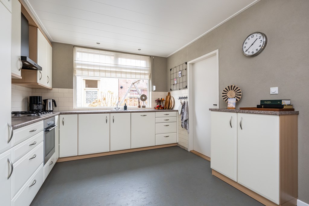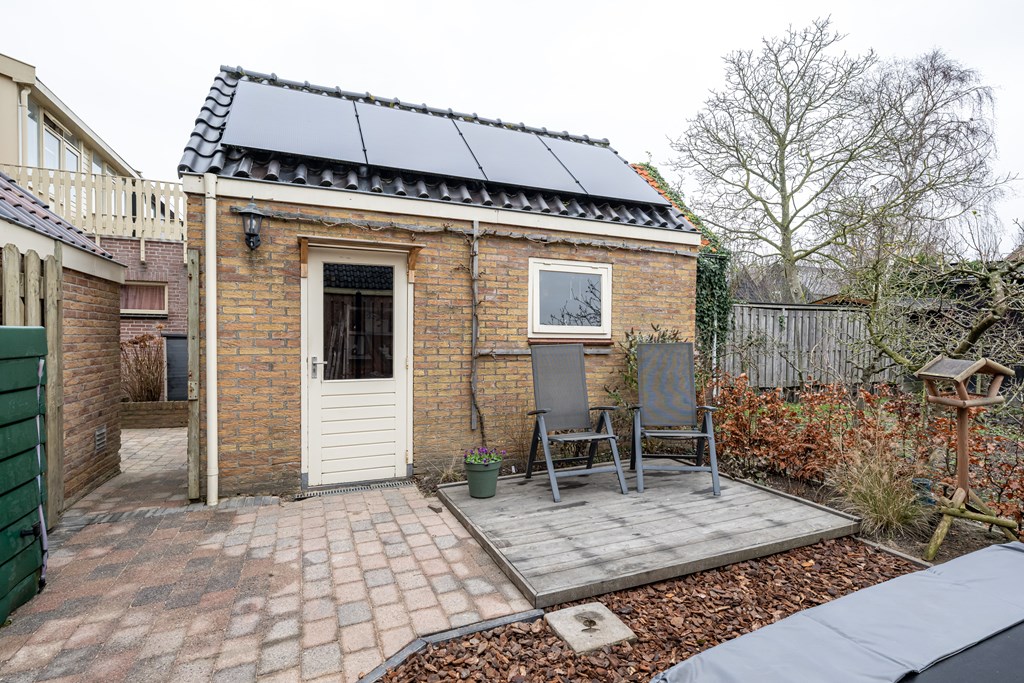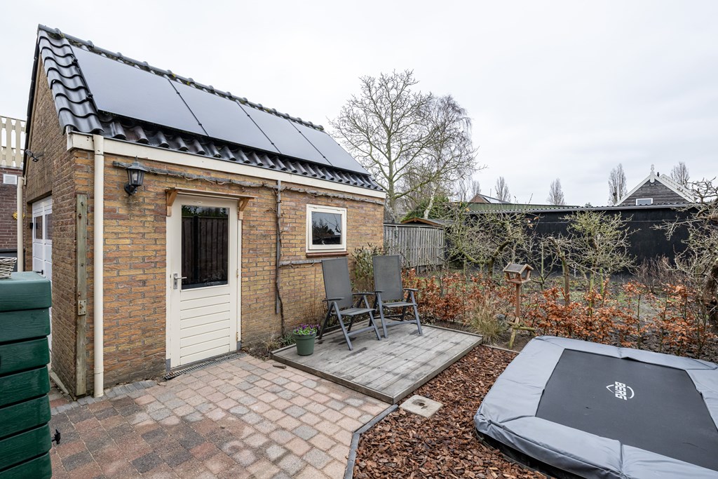 Buiten is het geheel net zo praktisch. U heeft een eigen oprit, waardoor parkeren op eigen terrein vanzelfsprekend is en u altijd dichtbij de voordeur kunt uitstappen. Daarnaast is er een vrijstaande stenen garage: ideaal voor uw auto, fietsen, gereedschap of als extra bergruimte. Het is een fijne aanvulling voor iedereen die graag ordelijk woont of simpelweg wat extra vierkante meters nodig heeft voor opslag of hobby’s. De woning is bovendien voorzien van rolluiken, wat u niet alleen extra privacy geeft, maar ook helpt bij comfort: aangenaam donker in de slaapkamers, koeler in de zomer en een extra gevoel van veiligheid.