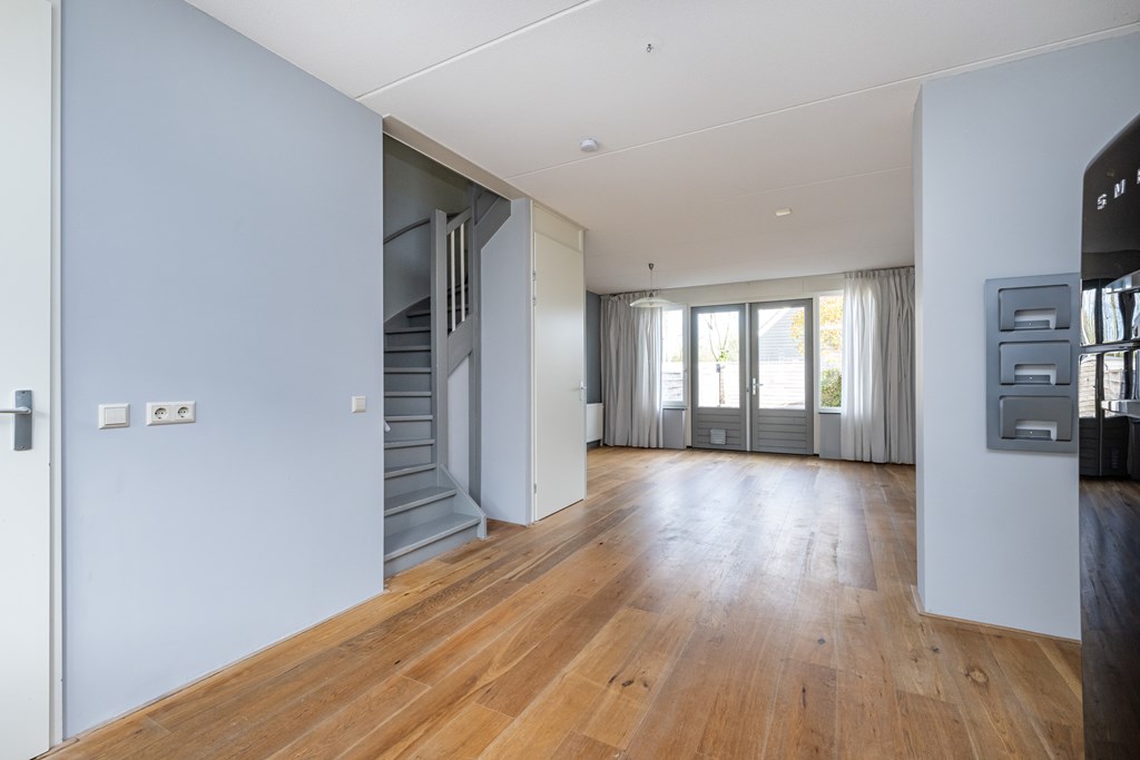Wanneer u de woning binnenstapt, valt direct op hoe licht en ruim het geheel aanvoelt. Dankzij het energielabel A bent u verzekerd van een duurzame en efficiënte woning, waarin u zowel in de zomer als in de winter aangenaam woont en waarbij de energielasten plezierig laag blijven. De begane grond vormt een harmonieuze leefruimte waar wonen, koken en genieten samenkomen. In de woonkamer zorgen de dubbel openslaande deuren niet alleen voor een overvloed aan daglicht, maar ook voor een directe verbinding met de tuin. Op warme dagen zet u de deuren open en vloeien binnen en buiten naadloos in elkaar over – ideaal voor lange zomeravonden, een barbecue of simpelweg een rustig moment met uitzicht op de karakteristieke omgeving.