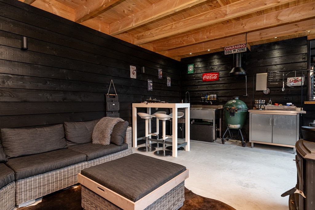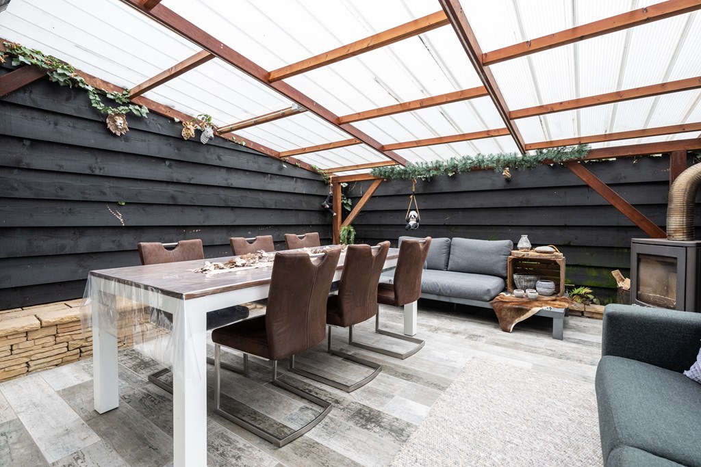 Voor wie echt van ontspanning houdt, is dit huis een schot in de roos. In de luxe tuinkamer met glazen, afsluitbare wanden zit u comfortabel in elk seizoen. Steek de houtkachel aan, sluit de wanden wanneer het nodig is en creëer precies de sfeer waar u zin in heeft. En dan is er nog het ultieme wellnessgevoel: uw eigen jacuzzi én sauna. Thuis komen krijgt hier een nieuwe betekenis.