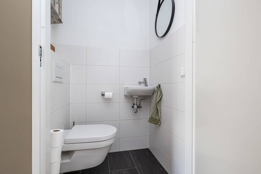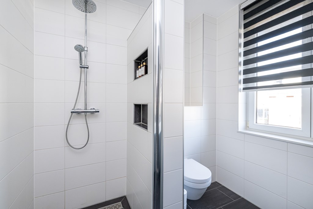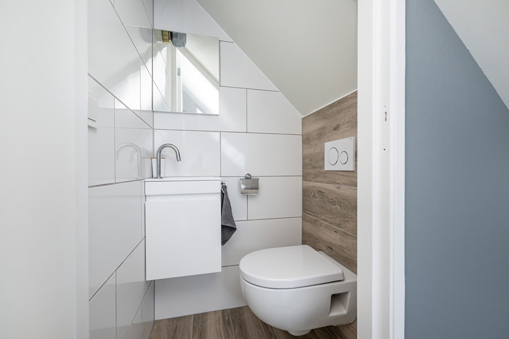 De woning is zeer praktisch ingedeeld. Op elke verdieping bevindt zich een toilet, wat zorgt voor extra comfort en gebruiksgemak in het dagelijks leven. Op de eerste verdieping treft u drie nette slaapkamers, ideaal voor een gezin of voor wie graag een thuiswerkplek wil inrichten. De tweede verdieping biedt een vierde ruime slaapkamer, perfect als masterbedroom, logeerkamer of hobbyruimte. Extra bergruimte is er in overvloed: boven de tweede verdieping bevindt zich namelijk nog een bergzolder, bereikbaar via een vlizotrap. Een ideale plek om seizoensspullen, koffers of andere zaken netjes uit het zicht op te bergen.