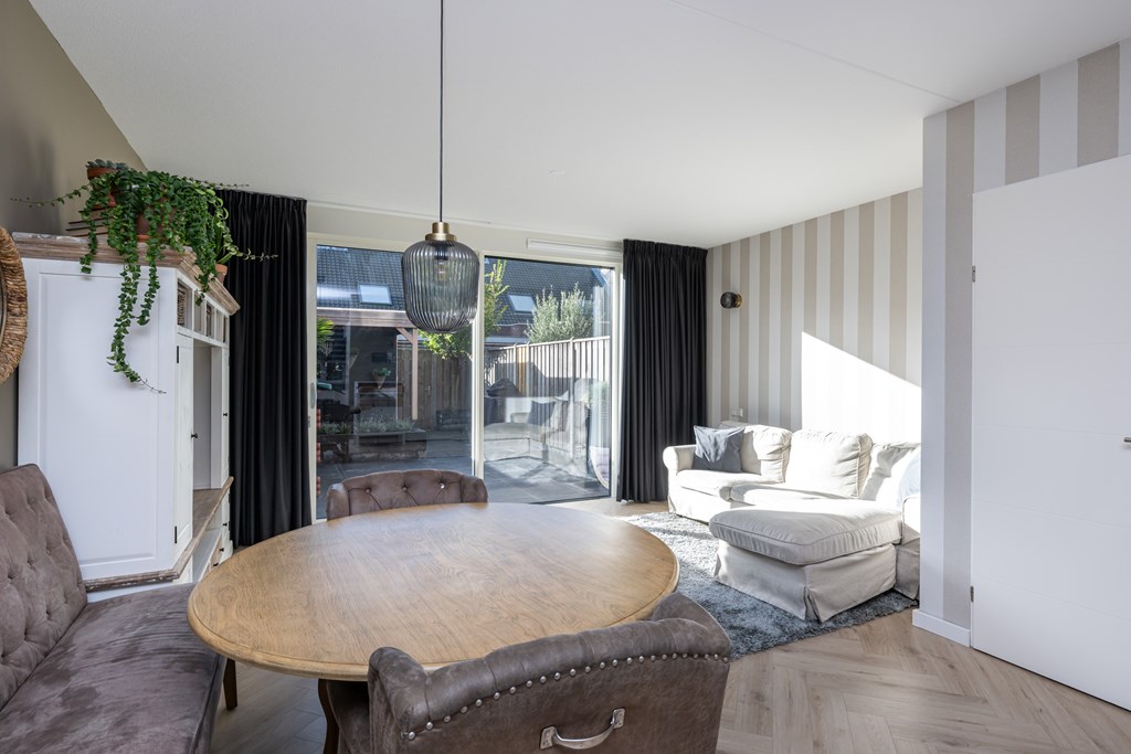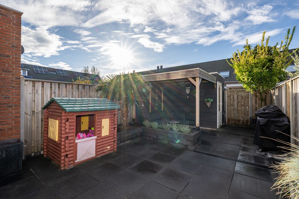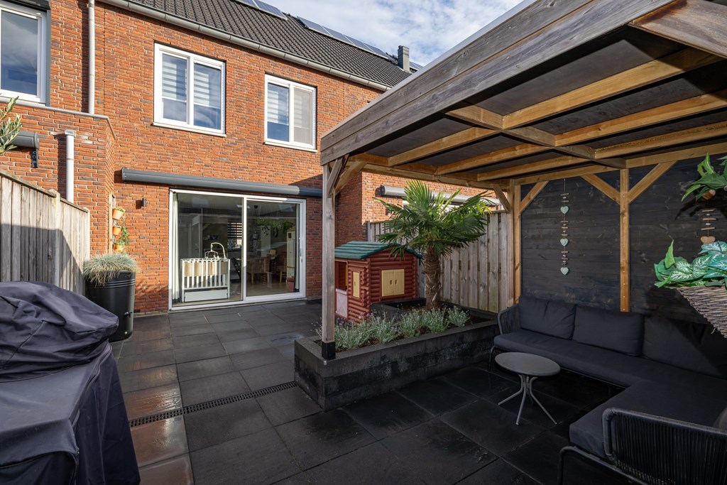 Bij binnenkomst ervaart u direct het wooncomfort dat deze woning te bieden heeft. De begane grond is uitgerust met vloerverwarming, wat zorgt voor een gelijkmatige warmteverdeling en een aangename leefomgeving, ongeacht het seizoen. Vanuit de sfeervolle woonkamer loopt u, via de schuifpui, zo de achtertuin in, die door de ligging op het zuidwesten optimaal profiteert van de middag- en avondzon. Hier vindt u bovendien een fraaie overkapping, waardoor u het hele jaar door kunt genieten van uw buitenruimte. Met 116m² eigen grond beschikt u over een fijne tuin en mogelijkheden om te ontspannen of gezellig te borrelen met vrienden.
