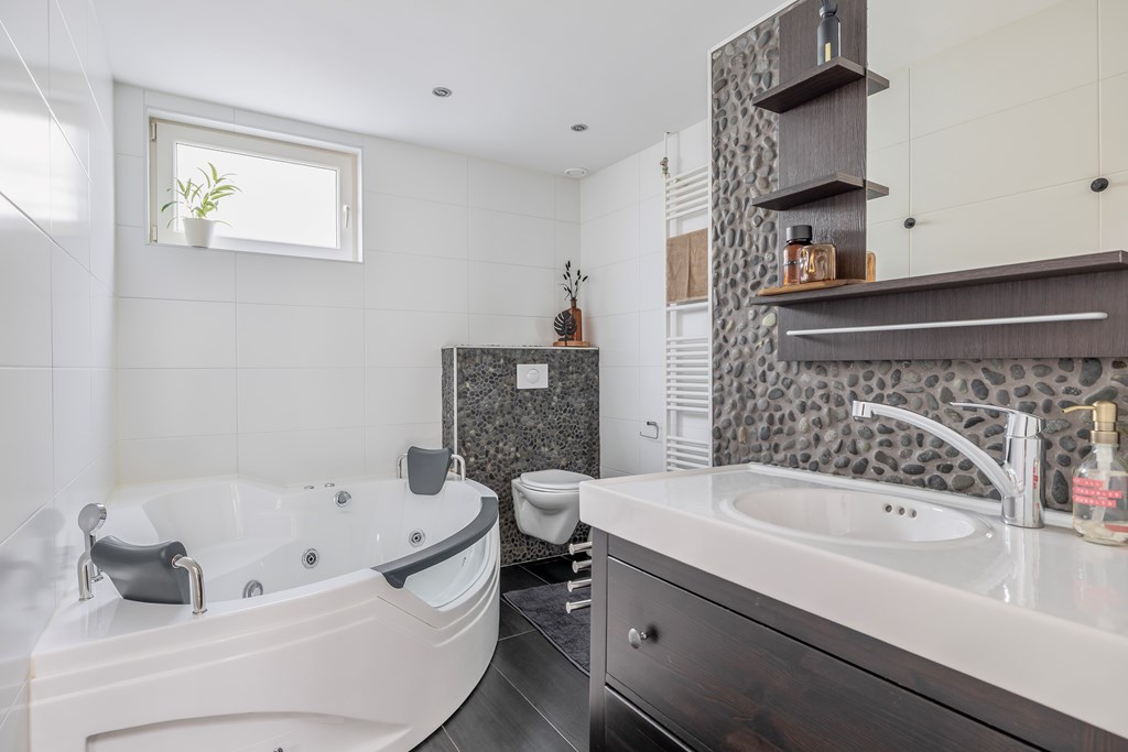 Zodra u binnenstapt, valt de lichtinval en de royale indeling direct op. De woning beschikt over maar liefst vijf grote slaapkamers, twee keukens en twee badkamers. De luxe wellnessbadkamer is een echte aanwinst: hier komt u tot rust in het duo ligbad met ontspannende streams, geniet u van een ruime inloopdouche en profiteert u van modern sanitair. Een plek waar elke dag begint én eindigt in comfort.